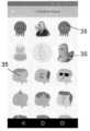 바람직하게는, 특정 사용자의 전송자 장치(4) 상의 디스플레이 상에 관계(18)에 의해 이러한 사용자와 연관된, 즉, 사용자가 그래픽 및/또는 오디오 요소의 만든이로서 인가/허용된, 또는 사용자가 구매했기 때문에 인가/허용된 그래픽 및/또는 오디오 요소(31)만 포함하는 키보드가 나타나도록 제1 소프트웨어 모듈이 구성된다.Preferably, it is associated with that user by way of a