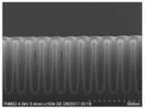도 2c에 도시하는 바와 같이, 상기 방법은 리세스된 피처(206)로부터 재료(208)의 일부분을 에칭하는 단계를 더 포함한다. SiO2 재료(208)의 경우에, SiO2를 효율적으로 에칭하는 화학적 산화물 제거(chemical oxide removal, COR) 공정을 사용할 수 있다. COR 공정은 기판(200)으로부터 에칭 생성물을 제거하기 위한 어닐링이 뒤따르는 동시 HF 및 NH3 노출을 포함할 수 있다. 일례로, 동시 HF 및 NH3 노출은 35℃에서 행해진 후 170℃에서 어닐링이 이어질 수 있다. 도 2e는 SiO2 재료의 일부분이 복수의 리세스된 피처로부터 에칭된 SEM 이미지를 나타낸다.As shown in FIG. 2C , the method further includes etching a portion of the material 208 from the recessed