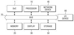 본 발명의 몇몇의 실시예에서, 상기 외부 장치는 메모리 장치, 디스플레이 장치, 네트워크 장치, 스토리지 장치 및 입출력 장치 중 적어도 하나를 포함하고, 상기 SoC는 상기 외부 장치를 제어할 수 있다.In some embodiments of the present disclosure, the external device includes at least one of a memory device, a display device, a network device, a storage device, and an input/output device, and the SoC may control the external device.