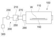 라이너(290)는 서셉터(150)를 둘러싸서 가스가 웨이퍼(W)로 유동하도록 유도하는 구성이다. 그를 위해, 라이너(290)는 대체로 링 형상을 가질 수 있다. 라이너(290)의 일측에는 가스가 웨이퍼(W)를 향해 유입되는 부분이, 그리고 타측에는 가스가 웨이퍼(W)를 벗어나 배출되는 부분이 형성된다.The
