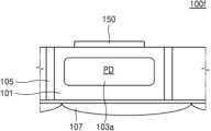 포토다이오드(103)는 반도체 기판(101) 내에 형성될 수 있다. 포토다이오드(103)는 n형 도핑 영역과 p형 도핑 영역을 포함할 수 있다. 포토다이오드(103)는 픽셀의 포토다이오드 영역(PA)에 배치될 수 있다. 한편, 포토다이오드 영역(PA)의 포토다이오드(103)의 상부 부분과 포토다이오드 영역(PA)에 인접한 TR 영역(TA)에 전하 전송을 위한 다수의 TR들이 배치될 수 있다. 도 1a에 도시된 바와 같이, 포토다이오드 영역(PA)과 TR 영역(TA)이 분리 구조(105)에 의해 분리될 수 있다. 분리 구조(105)는 예컨대, 깊은 트렌치 분리(Deep Trench Isolation: DTI) 구조일 수 있다. 그러나 분리 구조(105)가 DTI 구조에 한정되는 것은 아니다. 예컨대, 실시예에 따라, 분리 구조(105)는 얇은 트렌치 분리(Shallow Trench Isolation: STI) 구조일 수도 있다. 또한, 실시예에 따라, 포토다이오드 영역(PA)과 TR 영역(TA) 사이에 분리 구조가 생략될 수도 있다. 한편, 실시예에 따라, TR 영역(TA)으로의 광의 입사를 차단하기 위해 TR 영역(TA)에 대응하는 반도체 기판(101)의 하면 상에 메탈 쉴드층이 형성될 수 있다.The
