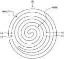 도 4는 공심 코일의 개략적인 구성의 일례를 나타내는 도면이다. 도 4에는, 필터(102(1))의 공심 코일(104(1))의 코일이 4턴분이 도시되어 있다. 또한, 공심 코일(104(1))의 권수는 4 턴으로 한정되는 것은 아니다.Figure 4 is a diagram showing an example of the schematic configuration of an air core coil. In FIG. 4, four turns of the air core coil 104(1) of the filter 102(1) are shown. Additionally, the number of turns of the air core coil 104(1) is not limited to 4 turns.