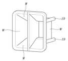한편, 상기 웨이브가이드(5)의 통로를 형성하는 벽면(W)의 양 단부 중, 상기 레이더소자(1)가 장착된 회로기판(3)을 향한 단부에는, 상기 회로기판(3)을 관통한 후 열융착에 의해, 웨이브가이드(5)가 상기 회로기판(3)에 고정되도록 하는 다수의 조립돌기(19)가 일체로 형성된다.Meanwhile, among both ends of the wall surface (W) forming the passage of the waveguide (5), the end facing the circuit board (3) on which the radar element (1) is mounted has a hole penetrating the circuit board (3). After heat fusion, a plurality of