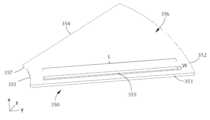 [0064]하우징(310)은 둥근형, 사각형, 또는 세장형일 수 있고, 이는, 차단기 플레이트(350)의 면을 바라볼 때, 긴 축 및 짧은 축이 존재한다는 것을 의미한다.  예컨대, 2개의 긴 측들 및 2개의 짧은 측들을 갖는 직사각형은, 긴 측들 사이에 중간에서 연장되는 세장형 축을 갖는 세장형 형상을 생성할 것이다.  몇몇 실시예들에서, 하우징(310)은, 2개의 긴 측들, 짧은 단부, 및 긴 단부를 갖는 웨지 형상이다.  짧은 단부는 한 지점이 될 수 있고, 짧은 단부 및 긴 단부 중 어느 하나 또는 둘 모두는 직선이거나 만곡될 수 있다.[0064] The