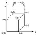 여기서, i=0, 1, j=0, 1 및 k=0, 1을 갖는 (ri, gj, bk)는 3D 컬러 공간 내의 부모 옥턴트의 정점들의 좌표들이고, (r, g, b)는 현재 정점의 좌표들이고,은 정점 (ri, gj, bk)와 관련된 제1 컬러 값이고,where (ri, gj, bk) with i=0, 1, j=0, 1 and k=0, 1 are the coordinates of the vertices of the parent octant in 3D color space, and (r, g, b) are These are the coordinates of the current vertex, is the first color value associated with vertex (ri, gj, bk),