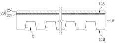 도17에 도시된 바와 같이, 패터닝 공정을 이용하여 실리콘 기판(10")의 제2 면(10B)의 표면적을 증가시킬 수 있다. 본 실시예와 같이, 실리콘 기판(10")의 제2 면(10B)에 반복적인 오목부(C)를 형성함으로써 부분적으로 두께를 감소시킬 뿐만 아니라 전체 표면적을 증가시킬 수 있다. 이러한 패터닝에 의해 얻어진 실리콘 기판(10")은 후속되는 기판의 제거공정에서 더욱 효과적인 에칭 작용을 기대할 수 있다.As shown in Figure 17, the surface area of the