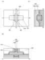 도 19는 본 발명의 일 형태에 따른 반도체 장치의 제작 방법을 도시한 상면도 및 단면도.