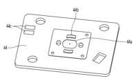서브 PCB 어셈블리(44)의 일면(즉, 메인 PCB 어셈블리(41)를 대향하는 면)에는 스위치(44a)가 형성되고, 스위치(44a)의 주변에는 하나 이상의 끼움구멍(44b)이 형성된다. 여기서, 스위치(44a)는 확인 키(47)와 접촉하게 된다. 예를 들어, 스위치(44a)는 돔(dome) 형상으로 형성될 수 있다.A