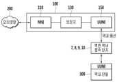 NNI(110)는 통신 국사와 연결된 광 케이블(미도시), 랜 케이블(미도시), 전화선(미도시) 중 하나와 직접 접속된다.The NNI 110 is directly connected to one of an optical cable (not shown), a LAN cable (not shown), or a telephone line (not shown) connected to a communication office.