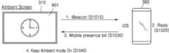즉, 모바일 기기(360)는 BLE 신호를 송신하는 송신단으로 동작할 수 있으며, 디스플레이 기기(310)는 BLE 신호를 수신하는 수신단으로 동작할 수 있다. 즉, 디스플레이 기기(310)는 BLE 신호를 수신하고 수신된 BLE 신호에 의해서 제어되는 장치가 될 수 있다. 예를 들어, 디스플레이 기기(310)는 모바일 기기(360)에서 수신되는 BLE 신호에 근거하여 턴 온 또는 오프될 수 있으며, 또는 엠비언트 서비스의 실행을 유지 또는 종료할 수 있을 것이다.That is, the