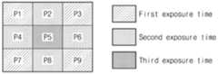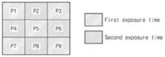 상술한 바와 같이, 본 발명의 실시 예들에 따른 노출 패턴에 따르면, 서로 다른 노출 시간에 대응하는 픽셀들의 수는 다를 수 있다. 즉, 각각의 노출 시간에 대응하는 픽셀들의 개수는 동일하지 않을 수 있다.As described above, according to exposure patterns according to embodiments of the present invention, the number of pixels corresponding to different exposure times may be different. That is, the number of pixels corresponding to each exposure time may not be the same.