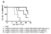 용어 "유효량" 또는 "치료상 유효량"은 목적하는 치료 결과를 달성하는 데 필요한 투여량 및 기간 동안 유효한 양을 지칭한다. 이중특이적 항체의 치료상 유효량은 개체의 질환 상태, 연령, 성별 및 체중, 및 개체에게서 목적하는 반응을 유발시킬 수 있는 이중특이적 항체의 능력과 같은 요인에 따라서 다양할 수 있다. 치료상 유효량은 또한, 항체 또는 항체 부분의 치료상 이로운 효과가 그의 어떠한 독성이나 해로운 효과도 능가하는 양이다.The term “effective amount” or “therapeutically effective amount” refers to an amount effective at the dosage and duration necessary to achieve the desired therapeutic result. The therapeutically effective amount of a bispecific antibody may vary depending on factors such as the disease state, age, sex, and weight of the individual, and the ability of the bispecific antibody to elicit the desired response in the individual. A therapeutically effective amount is also an amount in which the therapeutically beneficial effects of the antibody or antibody portion outweigh any toxic or deleterious effects thereof.