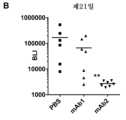 본원에 사용된 바와 같은 용어 "모노클로날 항체"는 단일 분자 조성의 항체 분자 제제를 지칭한다. 모노클로날 항체 조성은 특별한 에피토프에 대한 단일 결합 특이성 및 친화성을 디스플레이한다. 따라서, 용어 "인간 모노클로날 항체"는 인간 생식세포 계열 면역글로불린 서열로부터 유래된 가변 및 불변 영역을 갖는 단일 결합 특이성을 디스플레이하는 항체를 지칭한다. 인간 모노클로날 항체는 트랜스제닉 또는 트랜스크로모솜 비-인간 동물, 예컨대 인간 중쇄 트랜스진 및 경쇄 트랜스진을 포함하는 게놈을 갖는 트랜스제닉 마우스로부터 수득된 B 세포를 불멸화 세포와 융합되어 포함하는 하이브리도마에 의해 생성될 수 있다.As used herein, the term “monoclonal antibody” refers to a preparation of antibody molecules of single molecular composition. Monoclonal antibody compositions display single binding specificity and affinity for a particular epitope. Accordingly, the term “human monoclonal antibody” refers to an antibody that displays a single binding specificity with variable and constant regions derived from human germline immunoglobulin sequences. Human monoclonal antibodies are hybrids comprising B cells obtained from a transgenic or transchromosomal non-human animal, such as a transgenic mouse with a genome comprising a human heavy chain transgene and a light chain transgene, in fusion with an immortalized cell. Can be created by cutting board.