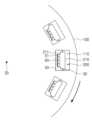 먼저, 도 3 및 도 4를 참조하면, 회전 유닛(100)에는 복수 개의 수용 공간(110)이 형성된다. 실시 예에 의하면, 수용 공간(110)은 4개 형성되며, 90도 사이각으로 배치된다. 수용 공간(110)은 소정 길이로 형성되며, 그 길이방향이 회전 유닛(100)의 반경 방향에 수직하게 배치된다.First, referring to FIGS. 3 and 4, a plurality of