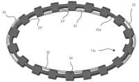 본 발명의 다양한 실시예들의 범위에서, 상기 설명된 이점들을 달성하기 위해 환형 요소에 일시적으로 부과된 변형 또는 변경은, 또한, 환형 요소 자체의 단일 부분들 및 그 전체 구조에만 적용될 수 있다. 유사하게, 본 발명은 또한, 동일한 원리에 따라, 물리적으로 서로 분리된 복수의 세그먼트들로 세분화되는 환형 구조들에 적용될 수 있다.Within the scope of various embodiments of the invention, the modifications or changes temporarily imposed on the annular element to achieve the advantages described above can also be applied only to single parts of the annular element itself and its overall structure. Similarly, the invention can also be applied, according to the same principle, to annular structures that are subdivided into a plurality of segments physically separated from each other.