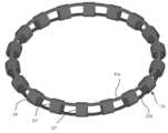 도 8a 및 도 8b는, 본 발명의 상이한 실시 예에 따른 환형 요소의 코어의 다른 버전을 예시한다. 도 8a는 코어 전체를 도시하는 한편, 도 8b는 그의 일 부분의 상세를 도시한다. 본원에 도시된 구조의 해법에서, 코어는 메쉬형 토로이달(meshed toroidal) 구조에 의해 실질적으로 구성된다. 이 경우에, 구조는 또한, 금속실들의 직물(fabric of interwoven metal threads)에 의해 그리고 링을 형성하도록 굴곡된 튜브로부터 시작하는 것 양자 모두에 의해 의해 구성될 수 있으며, 이 링은 선택적으로는, 반드시 폐쇄되는 것은 아니며, 그의 벽 상에서, 레이저 절단에 의해 적당한 개구들이 발생된다. 이 마지막 방법이 특히 유리하여, 메쉬의 아암들의 두께뿐만 아니라 튜브형 요소의 벽에 형성된 다양한 개구들의 치수들, 형상, 및 위치의 원하는 변경을 허용한다. 이런 식으로, 프로젝트의 요건들에 따라 코어 및 그에 따른 환형 요소의 탄성 복귀를 자유롭게 조정하기 위해서 큰 자유도의 구성이 제공된다. 단순히, 예시로서, 코어의 탄성 복귀는 위치에 따라 변화될 수 있으며, 더 경질인 영역들 및 보다 가요적인 영역들을 구성하는 것이 가능하거나, 전체적으로 그리고 단지 국부적 양자 모두로 구조의 이방성 거동을 얻을 수 있으며, 이는 예를 들어, 평면 내측의 변형들에 대해서는 가요성 코어를 제공하지만 평면 외측의 변형들에 대해서는 극도로 강성인 것을 제공할 수 있다.Figures 8a and 8b illustrate different versions of the core of the annular element according to different embodiments of the invention. Figure 8a shows the core as a whole, while Figure 8b shows details of a portion thereof. In the structural solution shown here, the core is substantially constructed by a meshed toroidal structure. In this case, the structure can also be constructed both by a fabric of interwoven metal threads and by starting from a tube bent to form a ring, which optionally consists of: It is not necessarily closed; suitable openings are created on its walls by laser cutting. This last method is particularly advantageous, allowing the desired variation of the dimensions, shape and location of the various openings formed in the wall of the tubular element as well as the thickness of the arms of the mesh. In this way, a large freedom of configuration is provided in order to freely adjust the elastic return of the core and thus the annular elements depending on the requirements of the project. Simply by way of example, the elastic return of the core can be varied depending on the position, making it possible to construct stiffer regions and more flexible regions, or to obtain an anisotropic behavior of the structure both globally and only locally. , which may, for example, provide a flexible core against in-plane deformations but extremely rigid against out-of-plane deformations.