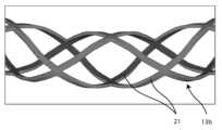 상기에 수여된 탄성 특성들에 독립적으로, 도 8에 설명된 메시형 구조는 도 7의 구조와 유사하게 그의 축 방향 범위가 증가하고, 초기 형상에 대해 상이한 형상들에 따라 변형되고 그리고 양자 모두의 변형들이 겹쳐지는 가능성을 허용한다.Independently of the elastic properties imparted above, the mesh-like structure described in Figure 8, similar to the structure in Figure 7, increases in its axial extent, deforms according to different shapes with respect to the initial shape and both Allows for the possibility of overlapping transformations.