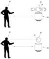 FIG. 12 is a drawing for explaining an example of a modular domestic robot according to the present invention interacting simultaneously with an external device and a user.