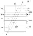 기판(101) 내에 트렌치(105)가 형성될 수 있다. 도 1의 평면도로 볼 때, 트렌치(105)는 어느 한 방향으로 연장된 라인 형상(line shaped)일 수 있다. 트렌치(105)는 활성영역(104)과 소자분리층(102)을 횡단하는 라인형상일 수 있다. 트렌치(105)는 분리트렌치(103)보다 더 얕은 깊이를 가질 수 있다. 다른 실시예에서, 트렌치(105)의 저부는 곡률을 가질 수 있다. 트렌치(105)는 매립 게이트 구조(100G)가 형성되는 공간으로서, '게이트 트렌치'라고 지칭할 수 있다.A trench (105) may be formed within the substrate (101). When viewed in the plan view of FIG. 1, the trench (105) may have a line shape extending in one direction. The trench (105) may have a line shape crossing the active region (104) and the device isolation layer (102). The trench (105) may have a shallower depth than the isolation trench (103). In another embodiment, the bottom of the trench (105) may have a curvature. The trench (105) is a space where a buried gate structure (100G) is formed, and may be referred to as a 'gate trench'.