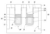 기판(11) 내에 트렌치(15)가 형성된다. 트렌치(15)는 활성영역(14) 및 소자분리층(12)을 횡단하는 라인 형상으로 형성될 수 있다. 트렌치(15)는 하드마스크층(16)을 식각 마스크로 이용한 기판(11)의 식각 공정에 의해 형성될 수 있다. 하드마스크층(16)은 기판(11) 상에 형성될 수 있고, 라인 형상의 오프닝을 가질 수 있다. 하드마스크층(16)은 기판(11)에 대해 식각선택비를 갖는 물질로 형성될 수 있다. 하드마스크층(16)은 TEOS(Tetra-Ethyl-Ortho-Silicate)와 같은 실리콘산화물일 수 있다. 트렌치(15)는 분리트렌치(13)보다 얕게 형성될 수 있다. 트렌치(15)의 깊이는 후속 게이트전극의 평균 단면적을 크게 할 수 있는 충분한 깊이를 가질 수 있다. 이에 따라, 게이트전극의 저항을 감소시킬 수 있다. 다른 실시예의 트렌치(15)의 저부 에지는 곡률을 가질 수 있다.A trench (15) is formed in the substrate (11). The trench (15) may be formed in a line shape crossing the active region (14) and the device isolation layer (12). The trench (15) may be formed by an etching process of the substrate (11) using a hard mask layer (16) as an etching mask. The hard mask layer (16) may be formed on the substrate (11) and may have a line-shaped opening. The hard mask layer (16) may be formed of a material having an etching selectivity with respect to the substrate (11). The hard mask layer (16) may be silicon oxide such as TEOS (Tetra-Ethyl-Ortho-Silicate). The trench (15) may be formed shallower than the isolation trench (13). The depth of the trench (15) may be sufficient to increase the average cross-sectional area of a subsequent gate electrode. Accordingly, the resistance of the gate electrode can be reduced. The lower edge of the trench (15) of another embodiment may have a curvature.