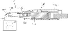 3차원 스캐너(10)는 사용자가 파지할 수 있는 케이스(100)를 포함할 수 있다. 케이스(100)는 3차원 스캐너(10)의 구성요소들을 내장하는 스캐너 본체(101)와, 상기 스캐너 본체(101)에 착탈 가능하도록 결합되는 스캐너 팁(104)을 포함한다.The 3D scanner (10) may include a case (100) that can be held by a user. The case (100) includes a scanner body (101) that houses components of the 3D scanner (10) and a scanner tip (104) that is detachably connected to the scanner body (101).