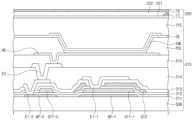 중간 연결 패턴들(E1-1, E1-2)은 제1 내지 제3 절연층들(211~213) 중 적어도 하나를 관통하여 반도체 패턴들(SP-1, SP-2) 또는 도전 패턴들(GT1-1, GT1-2, GT2) 중 적어도 하나와 연결될 수 있다. 제1 내지 제3 절연층들(211~213) 중 적어도 하나를 관통하도록, 컨택 홀들이 형성될 수 있고, 컨택 홀들을 통하여 중간 연결 패턴들(E1-1, E1-2) 각각은 해당 반도체 패턴 또는 도전 패턴에 연결될 수 있다. 예를 들어, 중간 연결 패턴들(E1-1, E1-2) 중 어느 하나(E1-1)는 게이트 신호를 게이트에 전달하도록 제1 도전 패턴(GT1-1)에 연결될 수 있다. 예를 들어, 중간 연결 패턴들(E1-1, E1-2) 중 다른 하나(E1-2)는 반도체 패턴(SP-2)의 드레인 (또는 소스)에 연결되어 트랜지스터에 흐르는 전류를 다른 전자 소자로 전달할 수 있다. 일례로, 중간 연결 패턴들(E1-1, E1-2)은 티타늄/알루미늄/티타늄의 3층 구조를 가질 수 있으나, 이에 제한되지 않는다.The intermediate connection patterns (E1-1, E1-2) can be connected to at least one of the semiconductor patterns (SP-1, SP-2) or the conductive patterns (GT1-1, GT1-2, GT2) by penetrating at least one of the first to third insulating layers (211 to 213). Contact holes can be formed to penetrate at least one of the first to third insulating layers (211 to 213), and each of the intermediate connection patterns (E1-1, E1-2) can be connected to the corresponding semiconductor pattern or conductive pattern through the contact holes. For example, one (E1-1) of the intermediate connection patterns (E1-1, E1-2) can be connected to the first conductive pattern (GT1-1) to transmit a gate signal to the gate. For example, another one (E1-2) of the intermediate connection patterns (E1-1, E1-2) may be connected to the drain (or source) of the semiconductor pattern (SP-2) to transmit current flowing in the transistor to another electronic element. For example, the intermediate connection patterns (E1-1, E1-2) may have a three-layer structure of titanium/aluminum/titanium, but is not limited thereto.