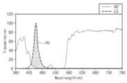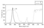 Figure 8 is a graph showing the transmission and reflection spectra of the filter layer for the first incident light.