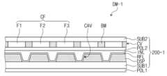 컬러 필터들(CF)은 광 변환층(CV)으로 입사되는 광의 에너지에 따라 색상을 변환시키거나 그대로 투과시킬 수 있다. 상기 입사된 광은 광 변환층(CV)에 의하여 다양한 색상을 가지면서 영상으로 구현될 수 있다.Color filters (CF) can convert the color of light incident on the light conversion layer (CV) or transmit it as is, depending on the energy of the light. The incident light can be implemented as an image with various colors by the light conversion layer (CV).