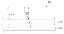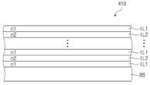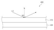 구체적으로, 광학 필터(400)는 필터층(410) 및 흡수층(420)을 포함한다. 필터층(410)은 도광판(300)으로부터 필터층(410)으로 입사하는 광을 선택적으로 투과 및 반사시킨다.Specifically, the optical filter (400) includes a filter layer (410) and an absorption layer (420). The filter layer (410) selectively transmits and reflects light incident on the filter layer (410) from the light guide plate (300).
