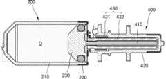 플런저(230)는 내부공간에 수용되어 전후방향으로 이동할 수 있다. 일 실시예로, 플런저(230)는 내부공간으로 유입되는 약액에 의하여 전방에서 후방으로 이동할 수 있다. 그리고, 구동 모듈에서 생성되는 구동력에 의하여 후방에서 전방으로 이동할 수 있다. 플런저(230)의 전진에 따라, 레저버(210)에 저장된 약액은 니들 어셈블리로 배출될 수 있다.The plunger (230) is accommodated in the internal space and can move forward and backward. In one embodiment, the plunger (230) can move from front to back by the liquid flowing into the internal space. And, it can move from back to front by the driving force generated from the driving module. As the plunger (230) moves forward, the liquid stored in the reservoir (210) can be discharged to the needle assembly.