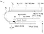 일 실시예에 따른 TSP(411)는 적어도 하나의 전극(476)이 배치될 수 있으며, 전극들 사이를 형성하는 스위치(미도시)가 적어도 하나의 전극(476), 기판층(417)과 연결될 수 있다. 전극(476)은 연결 라인(미도시)에 의하여 연결될 수 있으며, DDI(419)에 의해 스위치가 온 상태로 제어되면 전극들이 서로 연결될 수 있다. 전극들은 터치 위치 또는 압력을 확인하기 위한 캐패시턴스 값들을 가질 수 있다. 일 실시예에 따르면, TSP(411)는 ITO(indium tin oxide)와 같은 다양한 도전성 물질을 기초로 하는 투명한 전도성 층(또는, 필름)을 포함할 수 있고, 투명한 전도성 층을 이용하여 전극들의 역할을 수행할 수 있다.According to one embodiment, a TSP (411) may have at least one electrode (476) arranged, and a switch (not shown) formed between the electrodes may be connected to at least one electrode (476) and the substrate layer (417). The electrodes (476) may be connected by a connection line (not shown), and when the switch is controlled to an on state by the DDI (419), the electrodes may be connected to each other. The electrodes may have capacitance values for identifying a touch position or pressure. According to one embodiment, the TSP (411) may include a transparent conductive layer (or film) based on various conductive materials such as ITO (indium tin oxide), and may perform the role of electrodes by using the transparent conductive layer.