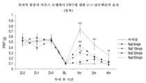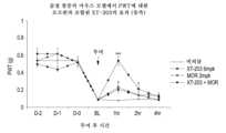 양쪽 발에 대해, XT-203 피하는 모의 비-MOG 래트에서 통증 반응에 효과가 없었다 (도 16a 및 16b). 염수는 MOG-처리된 래트에서 통증 반응의 진행에 효과가 없었다. XT-203 피하는 MOG-처리된 래트에서 통증 반응을 역전시켰고, 그의 통증 반응을 모의 래트에서 관찰된 것으로 되돌렸다.For both paws, XT-203 injection had no effect on pain responses in sham non-MOG rats (Figs. 16a and 16b). Saline had no effect on the progression of pain responses in MOG-treated rats. XT-203 injection reversed the pain response in MOG-treated rats, reverting their pain responses to those observed in sham rats.