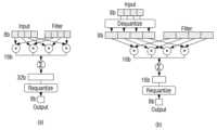 한편, 최근의 인공 신경망의 연산은 동일한 입력 값을 여러 시퀀스들에 따라 분기(branch)하여 처리하는 방식으로 수행될 수도 있다. 이는, 입력 값이 매우 크거나, 신경망 레이어의 수가 많아서 오버피팅(overfitting) 발생 가능성이 큰 상황에서 이용될 수 있다. 분기 연산은, 다른 필터 크기들을 이용하여 컨벌루션 연산을 수행하거나, 동일한 입력 값에 대하여 병렬로 풀링 연산을 수행한 후, 출력 채널 차수를 기준으로 연산 결과를 연결하여 최종 출력 값을 획득하는 방식으로 수행될 수 있다. 이러한, 분기 연산 방식의 인공 신경망 처리는, 예로, GoogLeNet, SqueezeNet 모듈 등이 있을 수 있다.Meanwhile, recent artificial neural network operations can be performed by processing the same input value by branching it according to multiple sequences. This can be used in situations where the input value is very large or the number of neural network layers is large, which increases the possibility of overfitting. The branching operation can be performed by performing a convolution operation using different filter sizes, or performing a pooling operation in parallel on the same input value, and then connecting the operation results based on the output channel order to obtain the final output value. Examples of artificial neural network processing using this branching operation method include GoogLeNet and SqueezeNet modules.