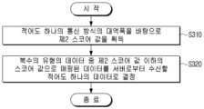 한편, 프로세서(130)는 적어도 하나의 서버와 통신 연결을 수행하는 통신 방식의 대역폭에 따른 제2 스코어 값을 획득할 수 있다. 예를 들어, 적어도 하나의 서버와 통신 연결하고 있는 방식의 대역폭이 클수록, 프로세서(130)는 큰 값의 제2 스코어 값을 획득할 수 있다. 따라서, 다중 연결 방식을 통해 큰 대역폭으로 서버와 통신 연결을 수행하는 경우, 프로세서(130)는 큰 값의 제2 스코어 값을 획득할 수 있다.Meanwhile, the processor (130) can obtain a second score value according to the bandwidth of the communication method that performs a communication connection with at least one server. For example, the larger the bandwidth of the method that performs a communication connection with at least one server, the larger the second score value can be obtained by the processor (130). Accordingly, when performing a communication connection with a server with a large bandwidth through a multi-connection method, the processor (130) can obtain a large second score value.