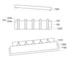 이에 따라, 융융되어 액체화된 연결 금속 물질(1210)로 비아홀(122)이 충진되어 연결 금속(123)의 연결부(123a)를 형성하고, 융융되어 액체화된 연결 금속 물질(1210)로 커버 글라스(1320)의 하면까지 충진되어 연결 금속(123)의 제1 돌출부(123b)를 형성할 수 있다. 이에 따라, 커버 클라스의 하면의 형태에 따라 연결 금속 물질(1200)이 충진될 수 있다. 구체적으로, 커버 글라스(1320)의 하면은 반구, 다각뿔, 원뿔, 다각 기둥, 원기둥 형태의 오목부를 가져 융융되어 액체화된 연결 금속 물질(1210)은 반구 형태의 커버 글라스(1320) 하면의 오목부를 충진하여 제1 돌출부(123b)를 형성할 수 있다. 예를 들어, 도 13에 도시된 바와 같이, 커버 글라스(1320)의 하면은 반구 형태의 오목부를 가져 융융되어 액체화된 연결 금속 물질(1210)은 반구 형태의 커버 글라스(1320) 하면의 오목부를 충진하여 반구 형태의 제1 돌출부(123b)를 형성할 수 있다.Accordingly, the via hole (122) is filled with the melted and liquefied connecting metal material (1210) to form the connecting portion (123a) of the connecting metal (123), and the melted and liquefied connecting metal material (1210) can be filled up to the lower surface of the cover glass (1320) to form the first protrusion (123b) of the connecting metal (123). Accordingly, the connecting metal material (1200) can be filled according to the shape of the lower surface of the cover class. Specifically, the lower surface of the cover glass (1320) has a concave portion in the shape of a hemisphere, a polygonal pyramid, a cone, a polygonal pillar, or a cylinder, and the melted and liquefied connecting metal material (1210) can fill the concave portion of the lower surface of the cover glass (1320) in the shape of a hemisphere to form the first protrusion (123b). For example, as illustrated in FIG. 13, the lower surface of the cover glass (1320) has a hemispherical concave portion, and the melted and liquefied connecting metal material (1210) can fill the concave portion of the lower surface of the hemispherical cover glass (1320) to form a hemispherical first protrusion (123b).