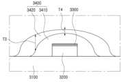 도 9를 참조하면, 일 실시예는, 렌즈부(3400)가 복수의 층으로 이루어진 점에서는 앞서 설명한 실시예와 동일하나, 제2 렌즈부(3420)의 형상이 상이한 경우이다. 제2 렌즈부(3420)를 제외한, 기판(3100), 발광 다이오드 칩(3200), 다층 반사구조(3300) 및 제1 렌즈부(3410)의 구성은, 앞서 설명한 실시예와 같으므로, 설명이 중복되는 것을 방지하기 위해 생략한다.Referring to FIG. 9, one embodiment is the same as the previously described embodiment in that the lens unit (3400) is composed of multiple layers, but the shape of the second lens unit (3420) is different. Except for the second lens unit (3420), the configuration of the substrate (3100), the light-emitting diode chip (3200), the multilayer reflective structure (3300), and the first lens unit (3410) is the same as the previously described embodiment, and therefore, the description is omitted to avoid duplication.
