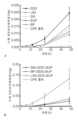 도 21(A). 개별 CPE의 침투 증강 효과.  모든 곡선은 시간 경과에 따라 TM을 가로질러 침투된 시프로플록사신의 누적량을 나타낸다.  모든 용액은 12% P407-PBP, 1% 시프로플록사신, 및 1% CPE를 이용하여 만들었으며, 단 'CPE 없음' 군은 CPE를 함유하지 않는다.도 21(B). CPE의 조합물의 침투 증강 효과.  모든 곡선은 시간 경과에 따라 TM을 가로질러 침투된 시프로플록사신의 누적량을 나타낸다.  모든 용액은 12% P407-PBP, 1% 시프로플록사신을 이용하여 만들었다.  특히, 스테아릴 메타크릴레이트 (SM) 및 SDS 및 부피바카인 (BUP) = 1.5% SM (용해도 한계), 1% SDS, 0.5% BUP; BP 및 SDS 및 BUP = 1.5% BP (용해도 한계), 1% SDS, 0.5% BUP; LIM 및 SDS 및 BUP = 2% LIM, 1% SDS, 0.5% BUP.