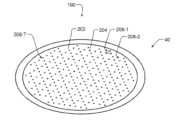 전구체 가스가 샤워헤드 (40) 의 내부에 위치된 가스 플레넘 (미도시) 에 공급된다. 전구체 가스는 복수의 주입기들 (244) 을 통해 가스 플레넘을 빠져 나간다. 일부 예들에서, 복수의 주입기들 (244) 각각은 제한된 오리피스 (orifice) 를 포함한다. 일부 예들에서, 쓰루홀들 (208) 의 그룹들 각각은 복수의 주입기들 (244) 중 적어도 하나를 포함한다. 그룹들 (208) 중 미리 결정된 하나의 쓰루홀들 (204) 각각은 임의의 다른 주입기들 (244) 보다 주입기들 (244) 중 연관된 하나 (즉, 그룹 (208) 이 주위에 클러스터링되는 (clustered) 주입기) 에 보다 가깝다. 도 3에 도시된 바와 같이, 가스 주입기 노즐들 (248) 은 주입기들 (244) 의 각각 상에 배열될 수도 있다. 노즐들 (248) 은 주입기들 (244) 로부터 하향으로 연장한다. 예시적인 목적들을 위해 몇 개의 노즐들 (248) 만이 도시되지만, 주입기들 (244) 각각은 노즐들 (248) 각각을 가질 수도 있다.A precursor gas is supplied to a gas plenum (not shown) located within the showerhead (40). The precursor gas exits the gas plenum through a plurality of injectors (244). In some examples, each of the plurality of injectors (244) includes a restricted orifice. In some examples, each of the groups of through-holes (208) includes at least one of the plurality of injectors (244). Each of the predetermined one of the through-holes (204) of the groups (208) is closer to an associated one of the injectors (244) (i.e., an injector around which the group (208) is clustered) than to any of the other injectors (244). As illustrated in FIG. 3, the gas injector nozzles (248) may be arranged on each of the injectors (244). Nozzles (248) extend downward from the injectors (244). For illustrative purposes, only a few nozzles (248) are shown, but each of the injectors (244) may have its own nozzles (248).