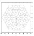 도 5는 본 개시에 따른 샤워헤드 (500) 의 예시적인 하면도를 도시한다. 이 예에서, 쓰루홀들 (504) 은 각각의 주입기들 (512) 주위에 클러스터링된 그룹들 (508) 의 삼각형 기반 패턴으로 배열된다. 중심 그룹 (516) 은 각각 6 개의 그룹들 (508), 12 개의 그룹들 (508), 18 개의 그룹들 (508), 24 개의 그룹들 (508), 및 24 개의 그룹들 (508) 의 각각의 연속적인 육각형 링들에 의해 둘러싸여 있다. 이 예에서, 그룹들 (508) 의 최외각 육각형 링은 또한 주입기들 (512) 각각의 주위에 클러스터링된 그룹들 (508) 중 특정한 그룹과 연관되지 않은 부가적인 쓰루홀들 (540) 을 포함한다. 대신, 쓰루홀들 (540) 은 최외각 육각형 링의 그룹들 (508) 의 패턴 내의 갭들 내에 배열된다. “링들”로 지칭되지만, 그룹들 (508) 은 도 4에 도시된 방식과 유사한 연속적인 육각형 패턴들로 배열된다.FIG. 5 illustrates an exemplary bottom view of a showerhead (500) according to the present disclosure. In this example, the through-holes (504) are arranged in a triangular based pattern of groups (508) clustered around each of the injectors (512). A central group (516) is surrounded by successive hexagonal rings of six groups (508), twelve groups (508), eighteen groups (508), twenty-four groups (508), and twenty-four groups (508), respectively. In this example, the outermost hexagonal ring of the groups (508) also includes additional through-holes (540) that are not associated with a particular group of the groups (508) clustered around each of the injectors (512). Instead, the through-holes (540) are arranged within gaps within the pattern of groups (508) of outermost hexagonal rings. Although referred to as “rings,” the groups (508) are arranged in a continuous hexagonal pattern similar to that illustrated in FIG. 4.