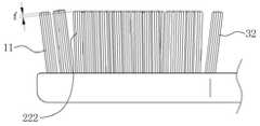 상기 사다리꼴형의 경사모다발(32)의 경우에는 상기 경사모다발(32)의 각 모서리(322)가 쐐기 역할을 하여 치간부를 파고들면서 치간부에 낀 찌꺼기 및 프라그를 용이하게 제거하게 된다.In the case of the trapezoidal