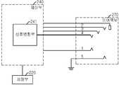 이를 보다 상세히 살펴보면, 이어잭부(270)는 이어마이크로폰으로부터 수신한 음성을 제어부(240)로 전달하기 위한 마이크단자(1번 단자), 서로 다른 음향(스테레오 음향)을 상기 이어마이크로폰으로 송신하기 위한 좌/우 음향단자(2번 및 3번 단자), 접지단자(5번 단자) 및 본 발명에 따른 이어잭 감지단자(4번 단자)를 구비한다.Looking at this in more detail, the