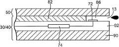 일 실시예에 있어서, 내부 층(50) 및 외부 층(30, 40)의 기판(90)은 각각 공통의 재료를 포함한다.  그러한 것으로서, 내부 층(50)과 외부 층(30, 40)의 열팽창 계수는 실질적으로 정합된다.  따라서, 내부 층(50) 및 외부 층(30, 40) 사이의 열구배는 최소화된다.  내부 층(50) 및 외부 층(30, 40)의 기판(90)에 적당한 예시적인 재료는 유리, 금속, 세라믹 재료, 탄소 복합 재료, 금속 매트릭스 복합 재료 또는 화학적으로 비활성이고 열적으로 안정한 임의의 재료를 포함한다.In one embodiment, the