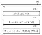 상기 통신신호 변복조 수단(220)은 상기 메인 유닛 장치(100)의 통신신호 변복조 수단(120)과 유사하며 통신 신호에 대한 변조 및 복조 처리를 수행한다. 즉, 상기 통신신호 변복조 수단(220)은 상기 전력선 통신수단(210)에서 수신한 변조된 통신신호를 복조하거나, 단말로부터 발생하여 입력받은 통신신호를 상기 전력선 통 신수단(220)을 통해 송신하기 위하여 변조 처리한다.The communication signal demodulation means 220 is similar to the communication signal demodulation means 120 of the