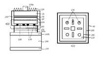 상기 이종 지지 기판 웨이퍼의 히트씽크 지지대인 이종 지지 기판(190) 상/ 하면에 형성된 웨이퍼 결합층(160b, 160c)은 소정의 압력 및 200℃ 이상의 온도에서 강한 결합력을 갖는 전기전도성 물질막으로 형성한다. 이때, Au, Ag, Al, Rh, Cu, Ni, Ti, Pd, Pt, Cr, Sn, In, Si, Ge, 금속 실리사이드(metallic silicide)로 이루어진 그룹에서 선택된 어느 하나로 형성되어 있다.The wafer bonding layers 160b and 160c formed on the upper and lower surfaces of the