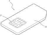 SIM(Subscriber Identity Module) 카드는, ICC(Integrated Circuit Card) 스마트 카드의 일종이고, 현재의 GSM 휴대 전화의 ID카드나 휴대식 전자 장치(예를 들면, 노트북 컴퓨터)에 자주 이용된다. 도 5에 나타낸 바와 같이, 종래의 SIM 카드(2)는, 플라스틱제의 카드 본체(20)를 구비하고, 상기 카드 본체(20)의 소정 위치에 칩(21)이 설치되고, 상기 칩(21)에 사용자의 신분 자료나 전화번호부 등의 자료가 기재된다. 상기 SIM 카드(2)를 휴대 전화(부호 생략)에 설치하면, 상기 칩(21)에 있어서의 단자가 휴대 전화의 내부에 설치되는 접속점과 연결되어 상기 휴대 전화의 안테나를 통해서 상기 자료의 전송을 행한다.A subscriber identity module (SIM) card is a kind of integrated circuit card (ICC) smart card and is often used for ID cards of current GSM mobile phones and portable electronic devices (for example, notebook computers). As shown in FIG. 5, the