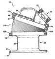 완전히 조립될 때, 도구 밀봉부는 수술용 접근 디바이스 내의 다양한 위치에 배치될 수 있다. 몇몇 실시예에서, 도구 밀봉부는 수술용 접근 디바이스의 밀봉부 베이스에 형성된 밀봉 포트 내에 배치될 수 있다. 사용시에, 도구는 도구 밀봉부의 중앙 개구를 통과할 수 있고, 밀봉 세그먼트가 결합하고 도구의 외부면 주위에 밀봉부를 형성하여 이에 의해 밀봉부를 통한 유체 및 가스의 통과를 방지할 수 있다. 어떠한 도구도 그를 통해 배치되지 않을 때, 중앙 개구는 일반적으로 작업 채널 내에 밀봉부를 형성하지 않지만, 어떠한 도구도 그를 통해 배치되지 않을 때 밀봉부가 형성되는 다른 구조도 또한 고려될 수 있다. 예시적인 도구 밀봉부 구조는 2004년 3월 31일 출원된 발명의 명칭이 "투관침 밀봉 조립체(Trocar Seal Assembly)"인 미국 특허 공개 제 2004/0230161호, 2003년 10월 15일 출원된 발명의 명칭이 "원추형 투관침 밀봉부(Conical Trocar Seal)"인 미국 특허 출원 제 10/687,502호에 더 상세히 설명되어 있고, 이들은 그대로 본 명세서에 참조로서 포함되어 있다.When fully assembled, the tool seal can be placed at various locations within the surgical access device. In some embodiments, the tool seal may be disposed in a sealing port formed in the seal base of the surgical access device. In use, the tool can pass through the central opening of the tool seal, and the sealing segments can engage and form a seal around the outer surface of the tool, thereby preventing the passage of fluids and gases through the seal. When no tool is placed through it, the central opening generally does not form a seal in the working channel, but other structures in which the seal is formed when no tool is placed through it can also be considered. Exemplary tool seal structures are described in US Patent Publication No. 2004/0230161 filed March 31, 2004 entitled “Trocar Seal Assembly,” filed October 15, 2003. It is described in more detail in this "Conical Trocar Seal" US Patent Application No. 10 / 687,502, which is incorporated herein by reference as such.