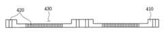 여기서, 하부 기판(410)이 상부 기판(310)과 구별되는 것은, 하부 기판(410)에는 다수의 쓰루 실리콘 비아(420)가 형성되어 있다는 점이다.  이는 기판 내부에 로직 회로의 반도체 칩을 내장하기 위한 것이다.  즉, 하부 기판의 배면에는 반도체 칩을 내장할 수 있는 캐비티(430)가 형성되고, 상기 캐비티에 의하여 반도체 칩이 안착되는 캐비티 부분에는 전술한 다수의 쓰루 실리콘 비아(420)가 형성된다.Here, the