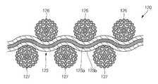 상기 발열체(120)는 이를 위해, 경사(121)와 위사(125)를 포함한다. 상기 경사(121)와 위사(125)는 상호간에 직조되어 상기 발열체(120)를 형성한다. 상기 경사(121)와 위사(125)는 상호간에 수직한 방향으로 형성되며, 서로 지그재그 방식으로 직조되어 상기 발열체(120)를 형성한다.The