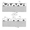 FIG. 5 is a simplified diagram of a coated membrane in which a water soluble and crosslinked polymer is included in the coating, illustrating possible effects on the structure of the coating of extraction of some or all of the water soluble polymer from the coating.