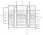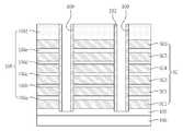 또 다른 실시예에서, 상기 수평 패턴들은 복수의 도전성 패턴들과 복수의 절연 패턴들이 교대로 적층되어 형성되되, 상기 수평 패턴들의 최상층은 절연 패턴이고, 상기 도전성 패턴들 중 최하부에 위치한 도전성 패턴은 상기 기판과 이격될 수 있다.In another embodiment, the horizontal patterns are formed by alternately stacking a plurality of conductive patterns and a plurality of insulating patterns, wherein the uppermost layer of the horizontal patterns is an insulating pattern, and the conductive patterns positioned at the lowermost of the conductive patterns are the It may be spaced apart from the substrate.